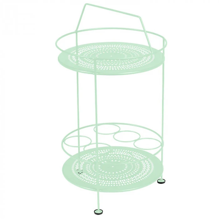 Le bar portatif sera idĂ©al pour complĂ©ter votre mobilier de jardin Montmartre et se fondra parfaitement Ă votre dĂ©cor. Ce petit bar s’avĂšre trĂšs utile pour le service grĂące Ă son porte-bouteille intĂ©grĂ©, il vous sera possible de glisser vos bouteilles de vins ou carafes d’eau. Son double plateau en tĂŽle acier perforĂ©e est Ă©galement pratique pour disposer des objets de dĂ©coration ou condiments de cuisine. TrĂšs maniable car lĂ©ger, ce bar portatif vous suivra partout.Â