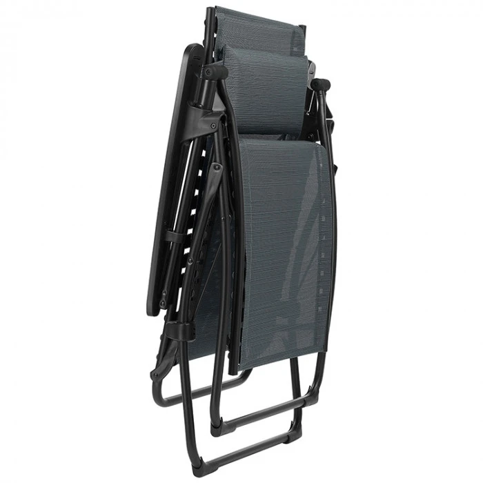 Ce fauteuil garde par ailleurs la possibilité de s’installer selon plusieurs positions : de la position assise à la position allongée en passant par la position de détente optimale « zéro gravité », vous pouvez répartir votre poids comme vous le désirez puis bloquer le fauteuil à l’aide du stabilisateur intégré. Lafuma a breveté la position zéro gravité pour vous procurer un confort maximal en pensant à la position que votre corps prendrait naturellement en apesanteur. Elle consiste à avoir les jambes légerement au dessus du niveau du coeur afin que votre corps forme un angle de 127° et que vous vous sentiez alors libérés du stress.