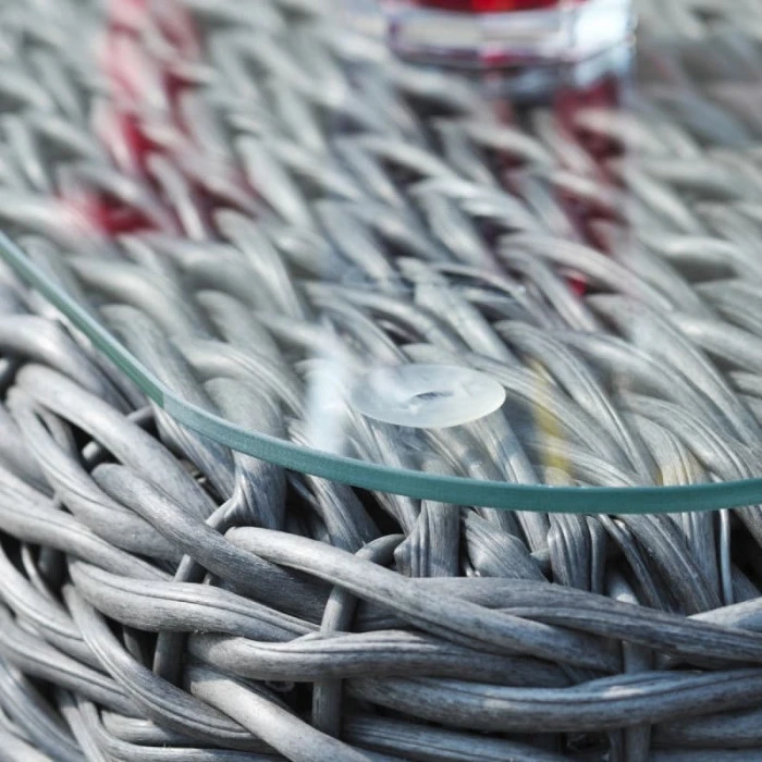 Pour le cĂŽtĂ© esthĂ©tique, mais aussi pour s’adapter parfaitement aux conditions extĂ©rieures, la rĂ©sine tressĂ©e est le matĂ©riau employĂ© pour l’habillage du mobilier.