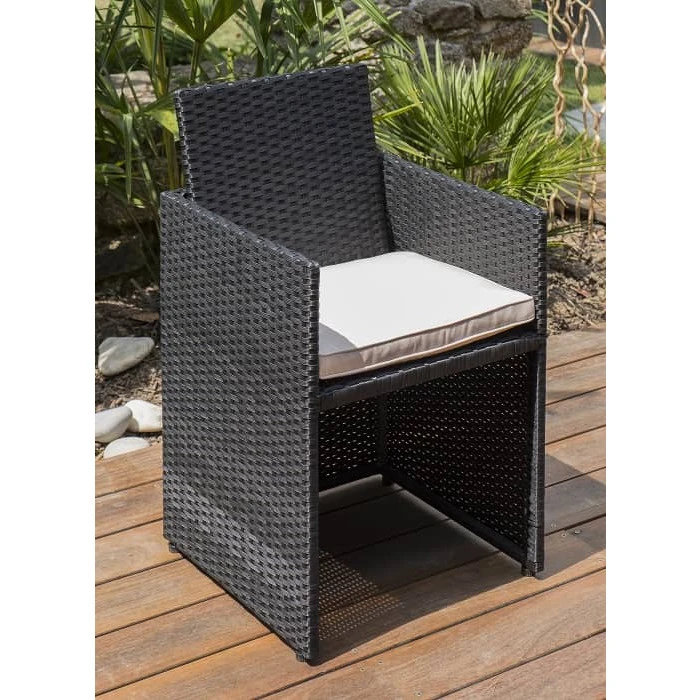 En achetant ce salon de jardin de la marque DCB Garden, vous gagnerez du temps sur votre recherche. La table et ses fauteuils sont conçus pour s’accorder ensemble et les sièges se rangent parfaitement sous la table pour un que la manoeuvre soit rapide et efficace. Cette association est parfaite pour aménager votre extérieur avec un salon de jardin design en résine tressée.