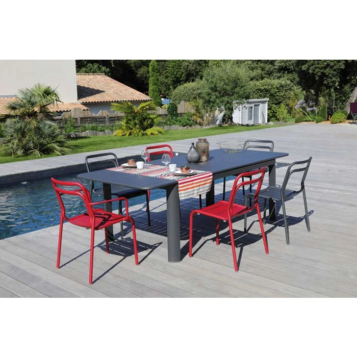 La table de jardin EOS graphite se mariera remarquablement avec tous types de chaises. Elle sera idéale pour les réceptions nombreuses !
